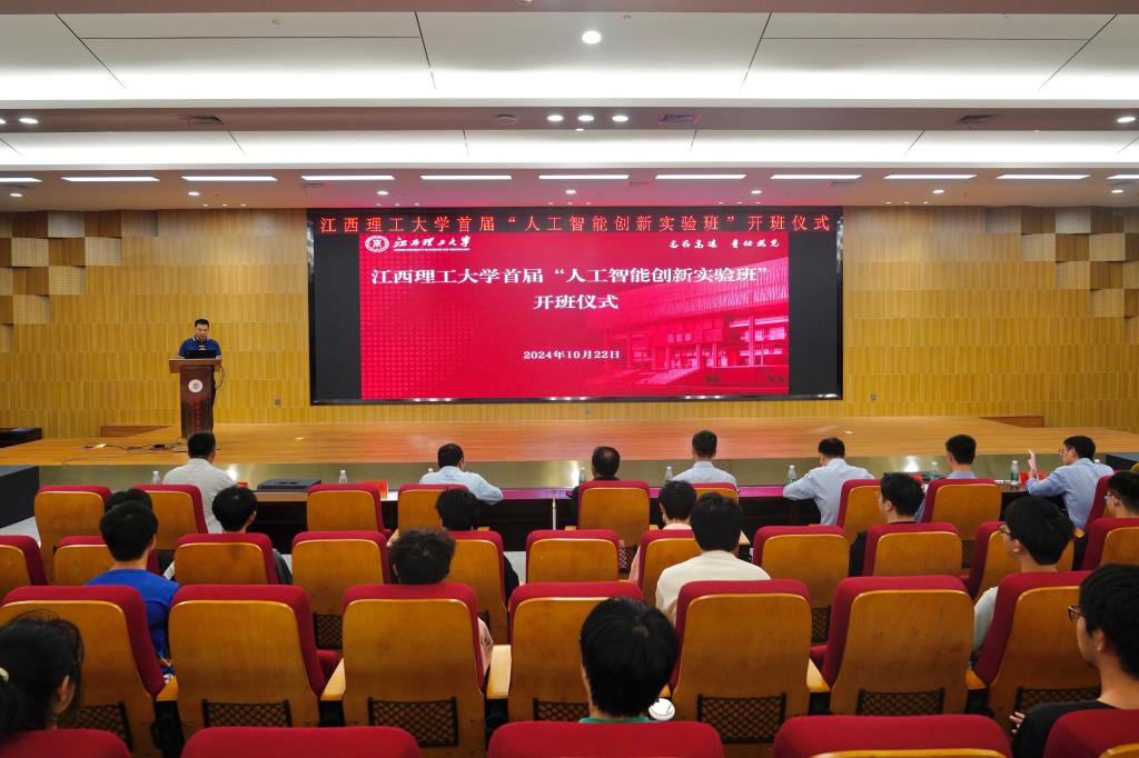 在三江校区图书馆报告厅举行首届“人工智能创新实验班”开班仪式。校教务处处长潘春荣,华院计算技术(上海)股份有限公司智能制造技术团队总监杨晶晶,教务处、国内合作促进中心及信息工程学院相关负责人、教师代表,首届“人工智能创新实验班”37名同学参加开班仪式。开班仪式由校教务处副处长鄢化彪主持。