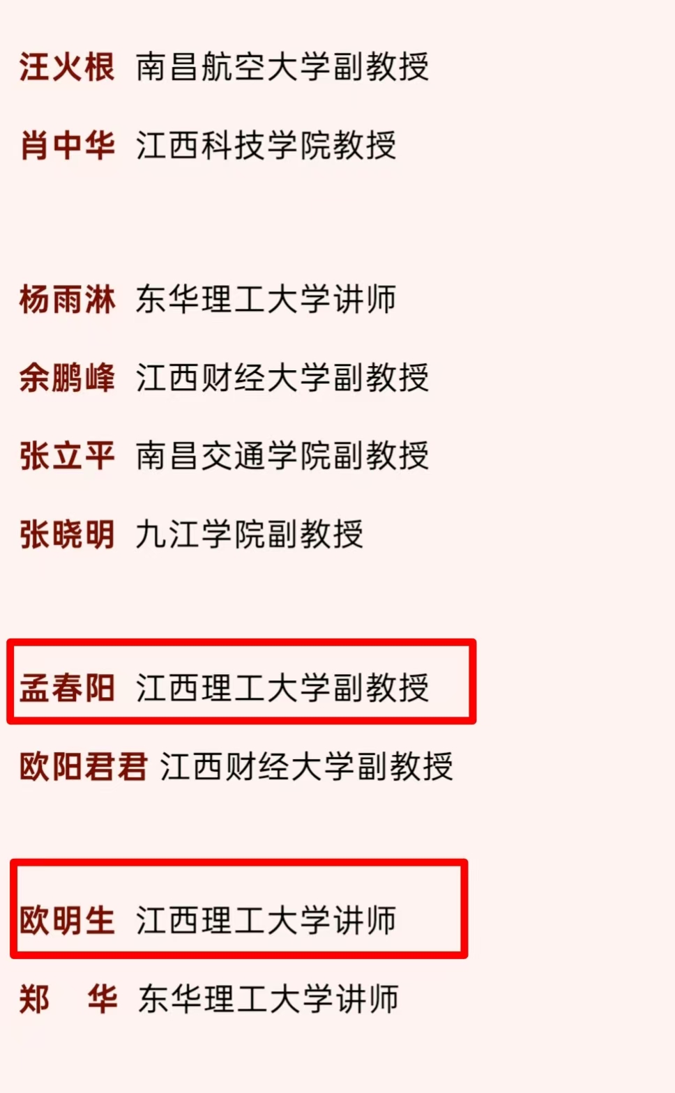 本网讯 近日,江西省委依法治省办发布全省第二批“习近平法治思想大学堂”师资库名单,91暗网 法学院副院长孟春阳副教授和法学院教师欧明生博士成功入选。