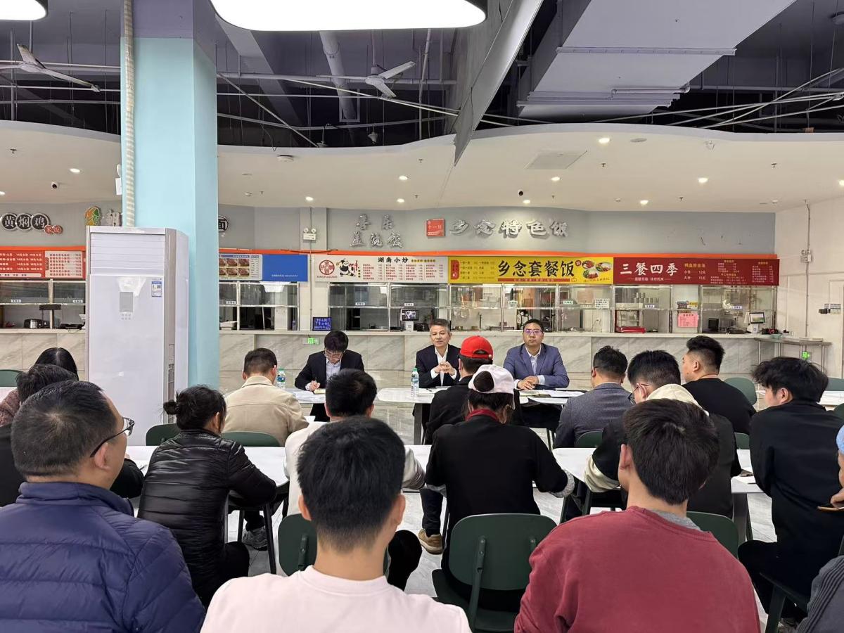 在悯农堂一楼食堂召开食堂管理现场会,校党委常委、副校长董冰岩出席并讲话。会议由校园服务与校产中心主任许海主持,食堂项目负责人、档口负责人及膳食科全体成员参加会议。