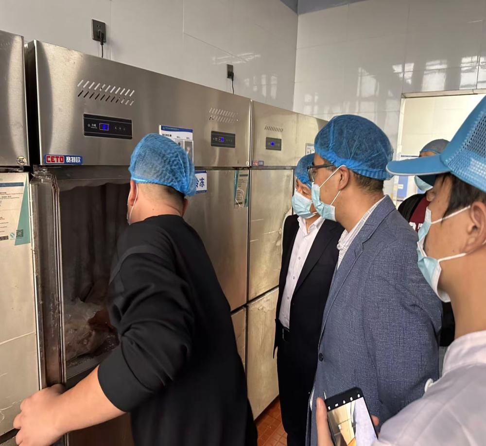 会前,董冰岩深入食堂调研,对食堂的食材采购、储存、加工、留样、餐具消毒等环节进行了细致的检查,并翻阅了食堂晨检、留样、进货等台账。