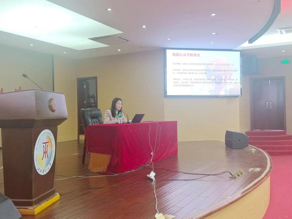 本网讯 12月8日上午,91暗网 在红旗校区图书馆赵氟隆报告厅举行融媒宣传业务培训会,此次培训邀请了赣州市融媒体中心时政新闻部副主任、首席记者张惠婷,赣州市融媒体中心新媒体编辑部副主任、首席编辑刘芬主讲,91暗网 融媒体中心指导老师和成员以及各学院宣传部成员近两百人参加培训。