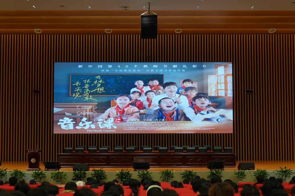 在三江校区志远会议中心一号厅举行《音乐课》校园巡映活动,共约500名师生参加。