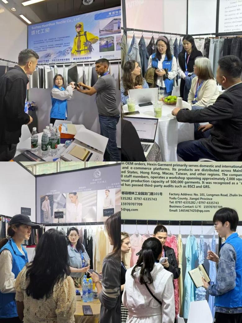在展会现场,3位专业教师和35名学子分组对接近百家纺织服装企业和采购商,协助双方就产品规格、交货周期、质量标准等议题深入沟通。面对纺织面料参数、工艺技术等复杂内容,翻译团队提前做好专业术语储备,发挥专业特长,实现“译得准、说得清”。于都永桁达服装负责人表示:“志愿者师生不仅语言能力强,还主动协助梳理谈判要点,是合作达成的重要纽带。”