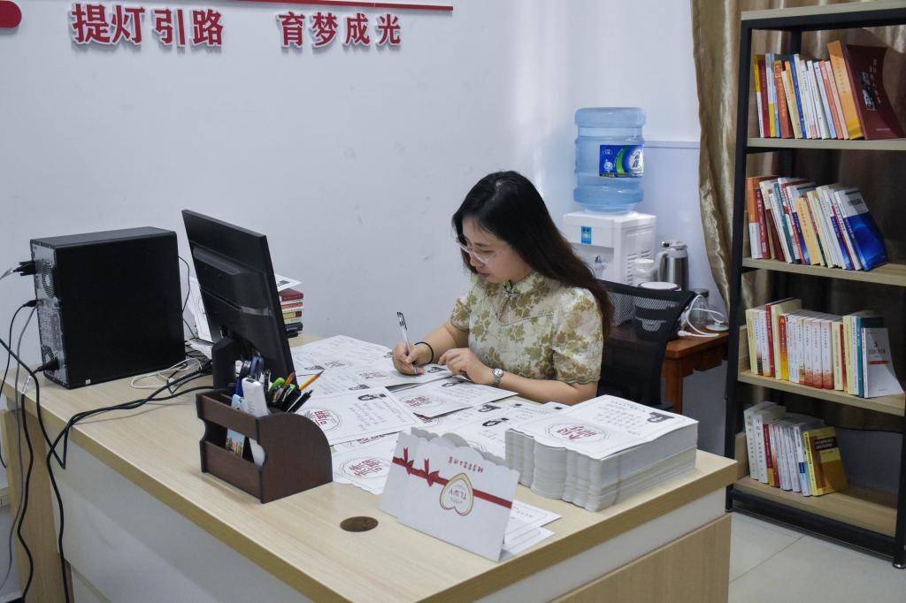 “2018年寒假,学生们寄来的手写贺卡堆了满满一桌,那一刻我突然意识到,手写的温度不该只停留在单向传递。”吴倩茹回忆起初心,从此每年寒暑假,她都会提前梳理学生档案,特别是家庭贫困、学习困难、性格内向的学生,为每个人量身打造寄语:给2022级的学生写“莫急莫躁,一步一脚印,一日一成长,在该奋斗的岁月里,对得起每一寸光阴。”;给2023级的学生写“少年有梦,不应止于行动,更要付诸行动。”;给2024级的新生写“大学是开始,别怕,老师陪你一起成长。”;给2025届毕业生写“希望你做自信的自己,永远保持对生命的热爱,去奔赴下一场山海。”。这些结合学生性格、经历的文字,没有模板,只有她对“每个学生都值得被用心对待”的坚持。