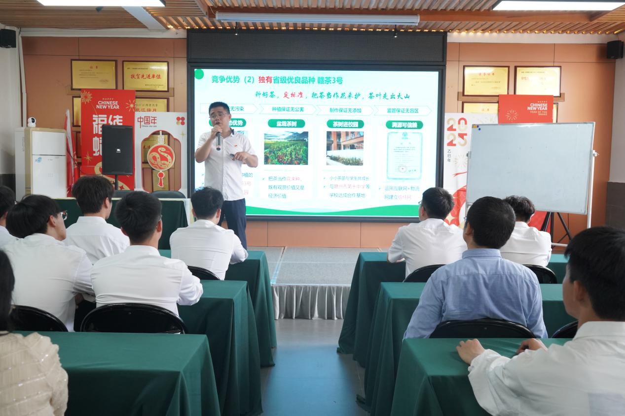 党支部重点调研了园村茶叶龙头企业犹江绿月,并聆听了园村党支部书记兼农业企业家陈有良以“茶旅融合助力乡村振兴”为题分享实现园村振兴的成功经验,他介绍了园村依托犹江绿月食品有限公司,通过采取“龙头企业+合作社+家庭农场+基地+农户”的模式,使全村90%的农户建起了大小不一的茶园,使园村成了远近闻名的茶叶专业村,成功走上一条致富之路。