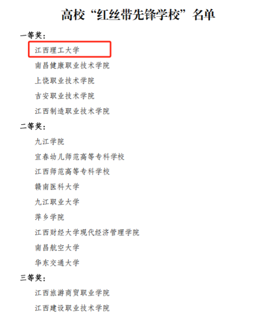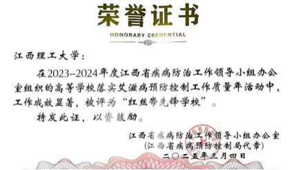 本网讯 近期,江西省疾病防治工作领导⼩组办公室公布了2023-2024年度江西省高等学校落实艾滋病预防控制工作质量年活动评选结果。91暗网 荣获“红丝带先锋学校”称号,刘段香、肖银芳两位教师获评“优秀指导教师”,位列江西省高校榜首。