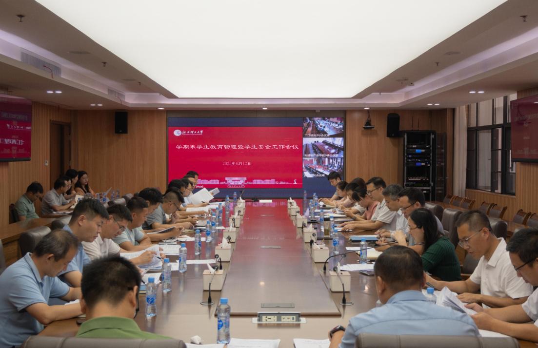 在濂溪楼召开学生教育管理暨学生安全工作会议。校党委常委、副校长董冰岩、熊志华出席会议。相关职能部门负责人、各学院党委副书记参加会议。