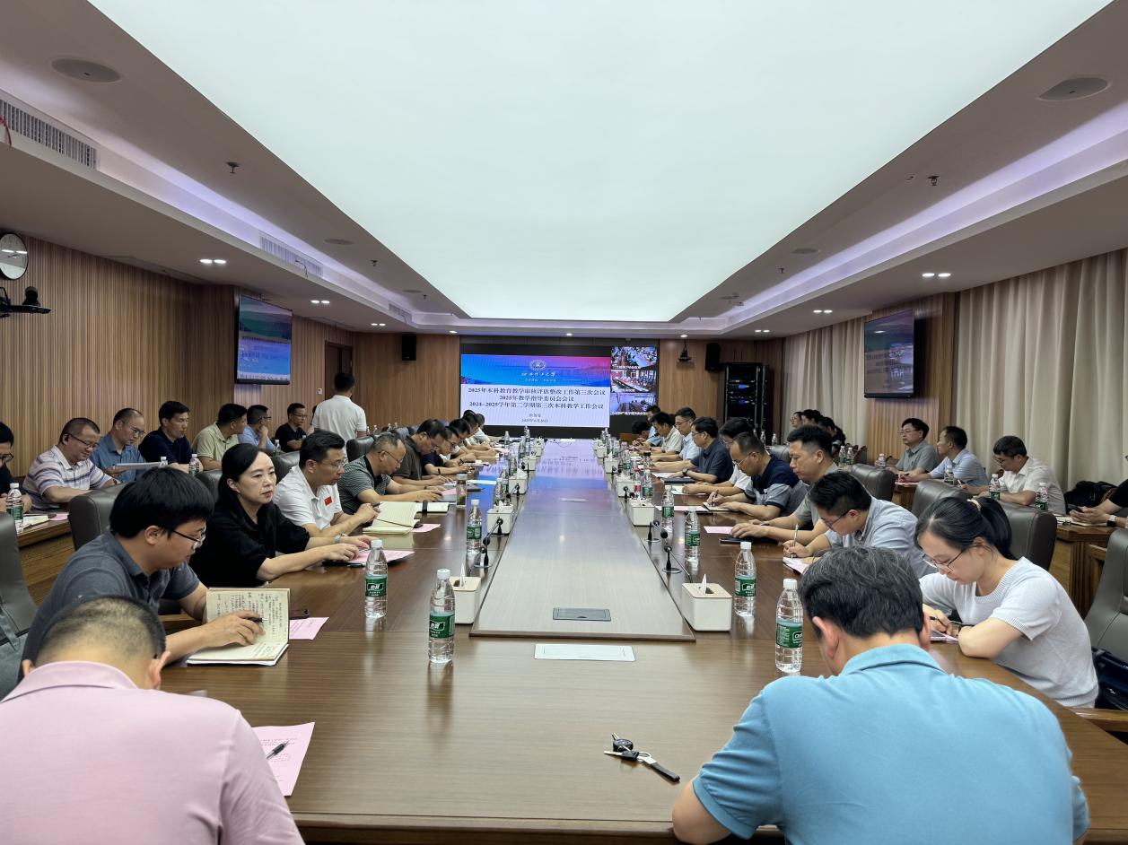 在三江校区濂溪楼2号会议室依次召开了2025年本科教育教学审核评估整改工作第三次会议、2025年教学指导委员会会议暨本学期第三次本科教学工作会议。校党委常委、副校长黄志繁出席,相关职能部门负责人、全体教指委委员、各学院分管教学工作副院长及教务处全体人员分阶段参加会议。校教务处处长潘春荣主持会议。