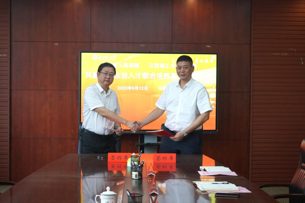 在座谈交流环节,双方就如何深化共建合作、扩展理论研究领域、搭建人才培养平台进行了探讨。会上,双方共同签署了《新时代卓越法治人才联合培养基地协议书》。