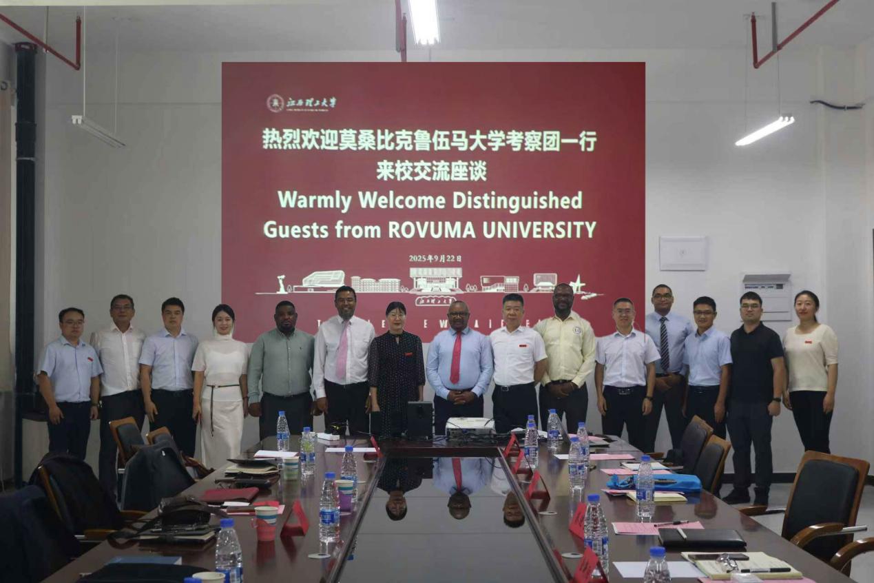 本网讯 9月22日,莫桑比克鲁伍马大学考察团一行来访,并在三江校区(西园)天工楼第一会议室举行交流座谈会。校国际交流与合作中心主任蔡进宝、资源与环境工程学院院长何桂春、副院长余新阳,生命科学学院副院长董伟、鲁伍马大学校长马里奥•若热•卡埃塔诺•布里托•多斯桑托斯、学术副校长伊布拉伊莫•哈桑•穆萨吉、工程学院院长格德斯•安东尼奥•卡埃塔诺、食品与农业科学学院院长蓬皮利奥•阿曼多•温图阿尔、莫桑比克中国投资有限公司区域经理郑逸恒参加了座谈交流。会议由何桂春主持。