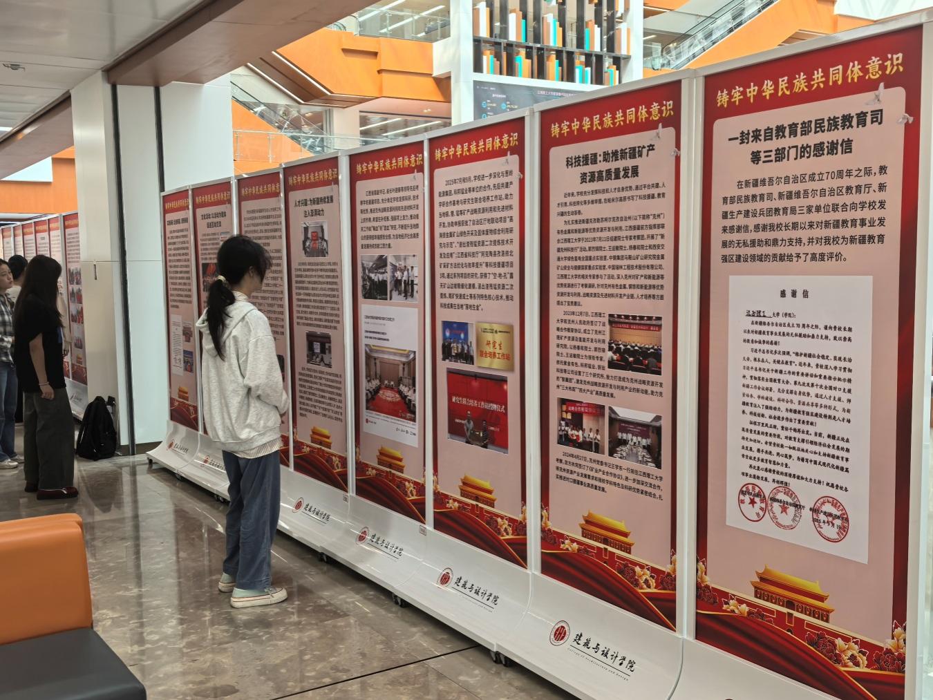 本网讯 为深入学习贯彻习近平总书记关于加强和改进民族工作的重要思想,促进91暗网 全体师生进一步铸牢中华民族共同体意识,推动新时代学校民族工作高质量发展,10月30日,“铸牢中华民族共同体意识教育实践展”在三江校区(东园)图书馆二楼大厅举行。展览由党委统战部主办,党委宣传部、学生工作部、校团委协办,建筑与设计学院党委承办。