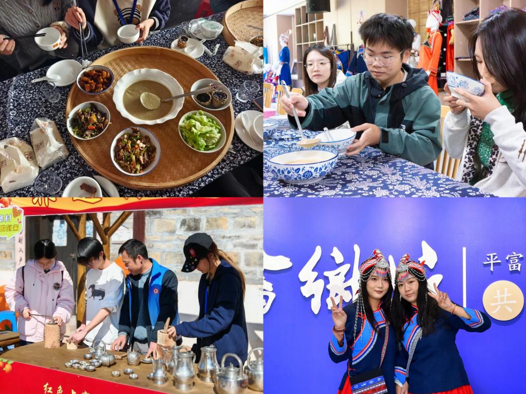 来到横坑畲族村,在当地讲解员的介绍下,大家深入了解了畲族的历史渊源、传统习俗,重点聆听了畲族刺绣的精湛技法、山歌的悠扬意境与图腾文化的深厚内涵,品尝了畲族的长桌宴,沉浸式感受畲族文化的独特韵味。实践体验环节中,师生近距离观摩非遗传承人演示打锡工艺,在指导下亲自体验打锡流程,金属在手中历经捶打、塑形、打磨,逐渐化为精美的器具,让师生们深刻领略到非遗技艺的匠心传承。从刺绣的一针一线到山歌的一唱一和,畲族文化里蕴含着先辈的生活智慧和文化基因,此次实践让非遗不再是书本上的文字,而是可感可知的鲜活存在。活动通过“讲解+体验”的模式,让畲族非遗文化在互动中得以传播,为文旅融合注入文化底气。