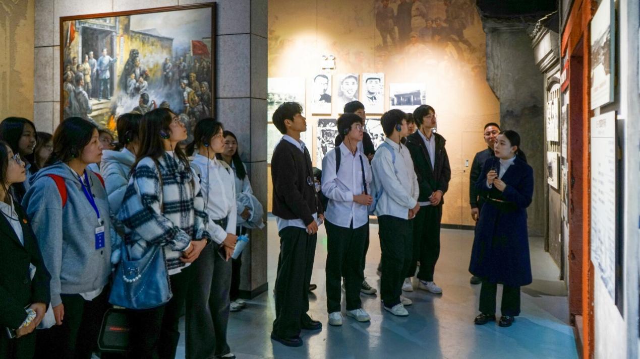 抵达中央红军长征出发地纪念馆,辉煌耀眼的党徽与庄严肃穆的纪念碑交相辉映。走进展馆,渡船、草鞋、行军锅、土砻等一件件珍贵文物静静陈列,它们都是那段艰苦卓绝长征岁月的真实见证。从红军战士使用过的步枪、背包,到记载战略部署的文献资料,再到渡于都河模拟场景,师生驻足观看,并通过模拟沙盘等方式切身体验。