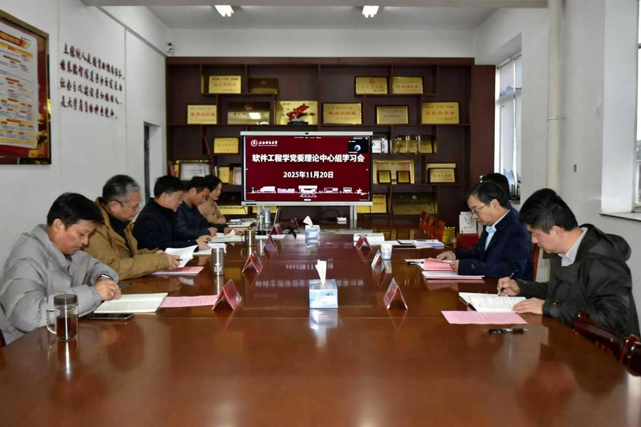 会议通过观看视频的方式学习了习近平总书记在广东考察时的重要讲话精神。会议还学习了《中共中央关于制定国民经济和社会发展第十五个五年规划的建议》《深刻把握“十五五”时期我国发展必须遵循的重要原则 —— 论学习贯彻党的二十届四中全会精神》《学习贯彻党的二十届四中全会精神中央宣讲团动员会在京召开 蔡奇出席会议并讲话》《因地制宜发展新质生产力》《习近平谈治国理政》第五卷第四章“因地制宜发展新质生产力,实现高质量发展”等理论文章。软件工程学院院长薛锦春结合党的二十届四中全会精神介绍了软件工程学院“十五五”发展规划情况,明确了未来发展的核心目标与关键任务。