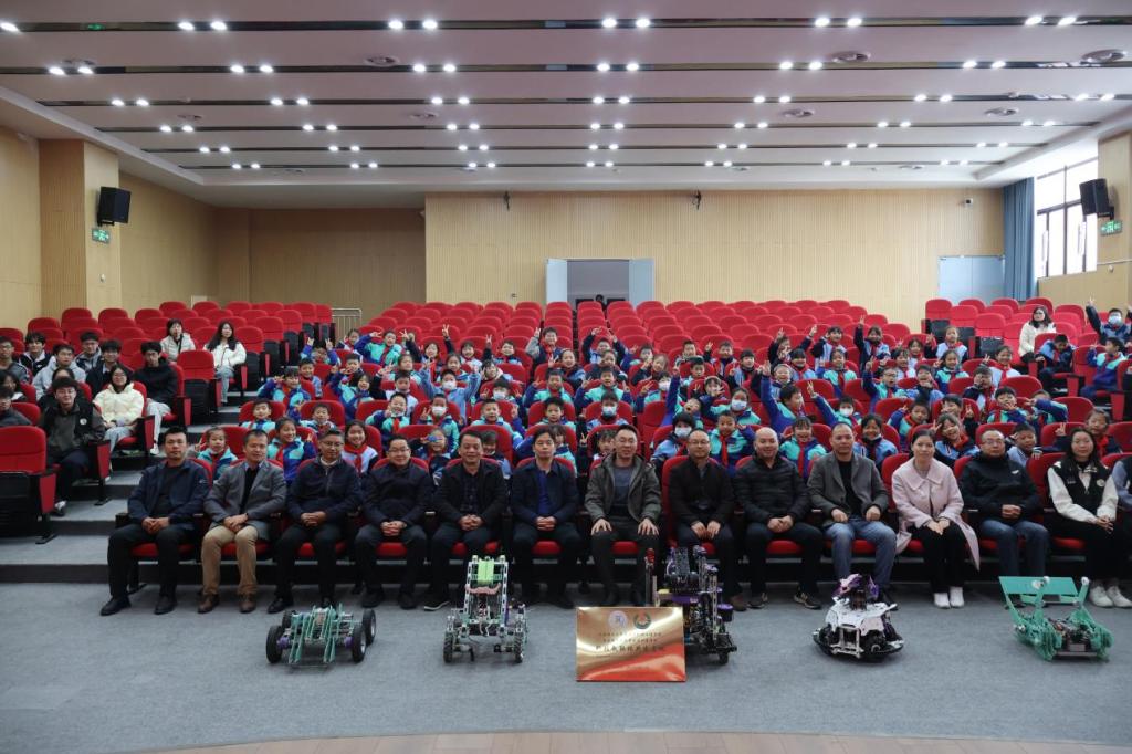 在全场嘉宾的见证下,双方代表完成签约,随后共同为科技教联体共建基地揭牌。仪式结束后,参会人员合影留念,双港学校的同学们还参与到机器人互动环节中,近距离感受科技魅力,现场欢声笑语不断。