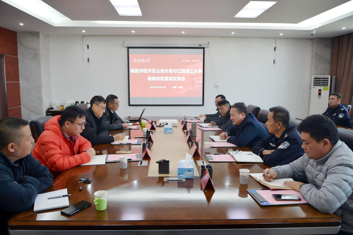 本网讯  12月17日,南昌校区与南昌市经开区公安分局座谈交流会在图书信息综合楼第二会议室举行。南昌市经开区党工委委员、公安分局党委书记、局长吴建军一行,南昌校区管委会分管日常工作的副主任兼党委副书记潘春荣及校区相关部门负责人出席会议,共商校园安全稳定与校警合作事宜。