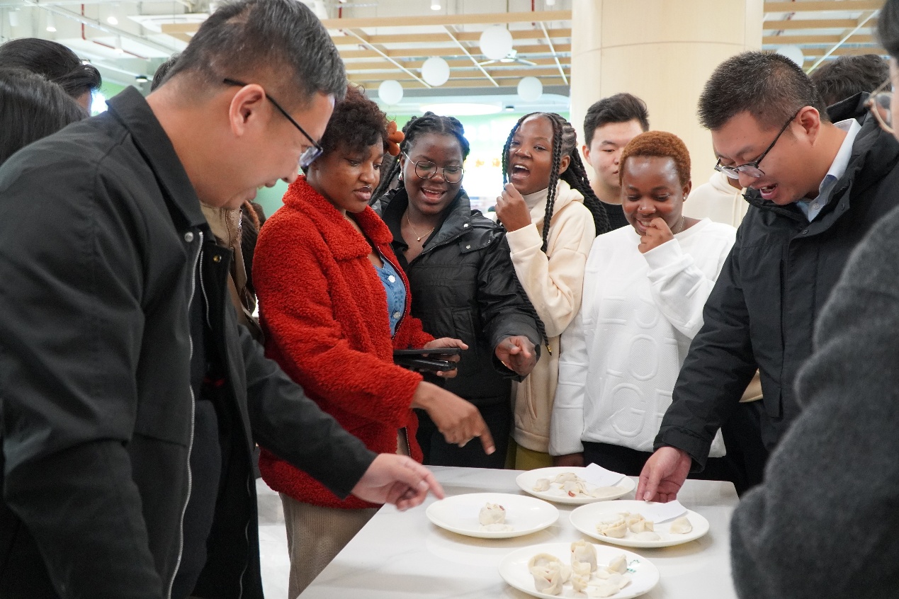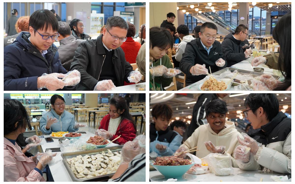 饺子制作完成后,师生共同品尝劳动成果。国际学生在分享中表示:“很喜欢中国饺子,也很享受这次活动!”中国学生则谈到,尽管语言交流存在一定障碍,但包饺子的过程让大家自然融入协作,氛围温馨和谐,并期待未来继续举办类似活动。