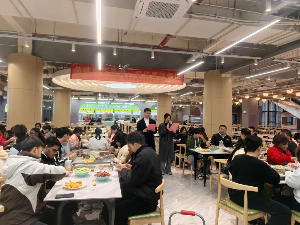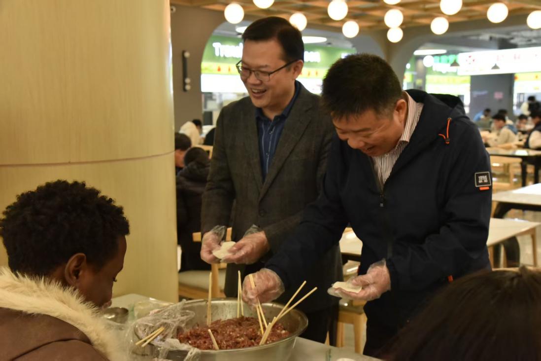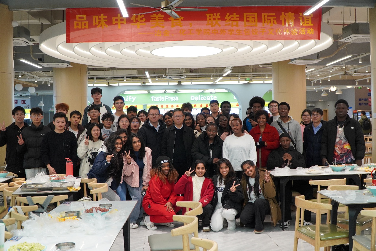 本网讯 为促进中外学生文化交流,增进友谊与理解。12月24日,由国际教育学院主办,化学化工学院、冶金工程学院承办的“品味中华美食,联结国际情谊”中外学生包饺子文化体验活动在三江西园食堂二楼顺利举行。校党委常委、副校长熊志华,国际教育学院院长蔡进宝,国际教育学院院长助理黄颖敏,化学化工学院党委副书记舒庆,冶金工程学院党委副书记刘付朋及国际班辅导员、授课专任教师代表及中外学生共同参与了本次活动。