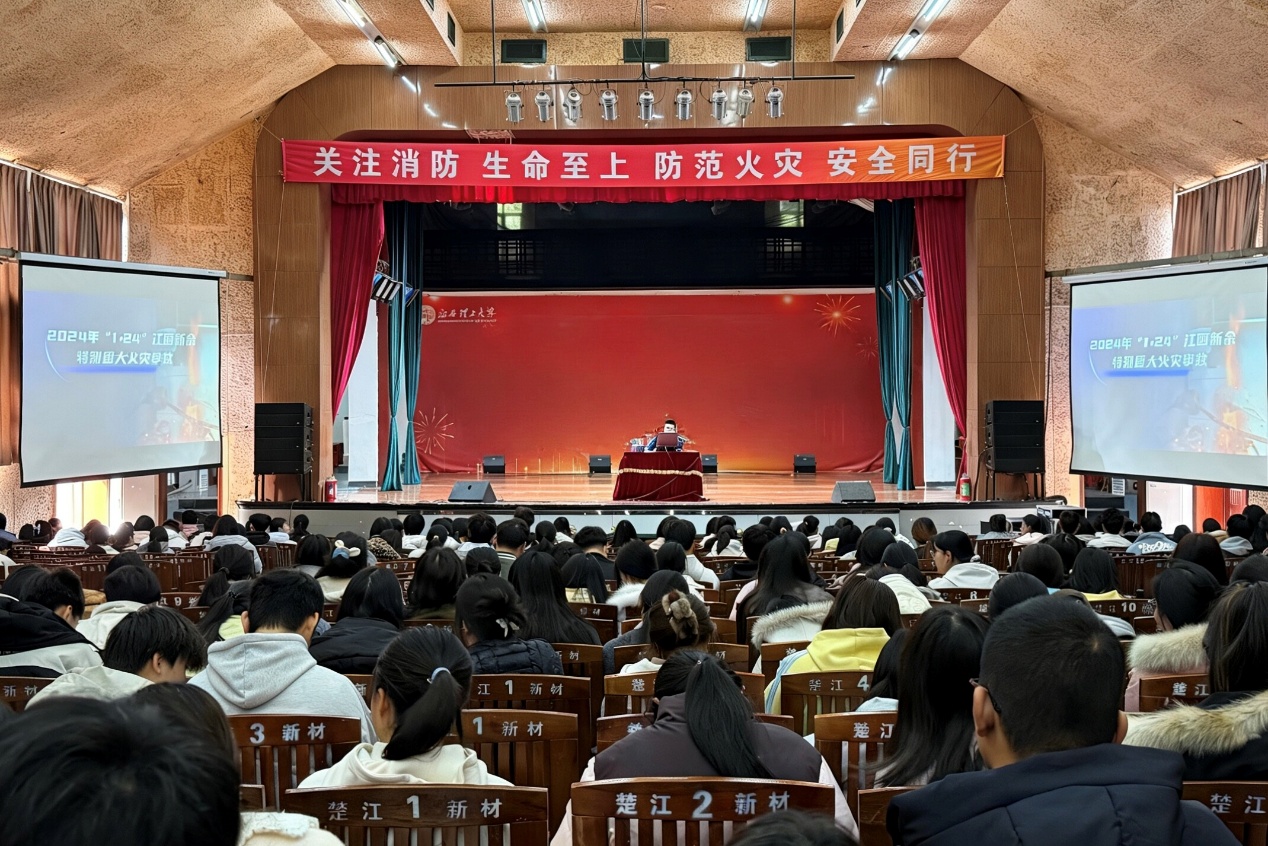 活动伊始,胡望林首先向学生们普及消防安全法律法规,夯实安全认知基础;接着,他结合2024年江西新余等重大火灾案例,深入剖析火灾成因与严重后果,强调防火安全的重要性,讲解火灾防范基本措施,用真实案例敲响安全警钟,让学生深刻认识到防火安全的紧迫性和重要性。