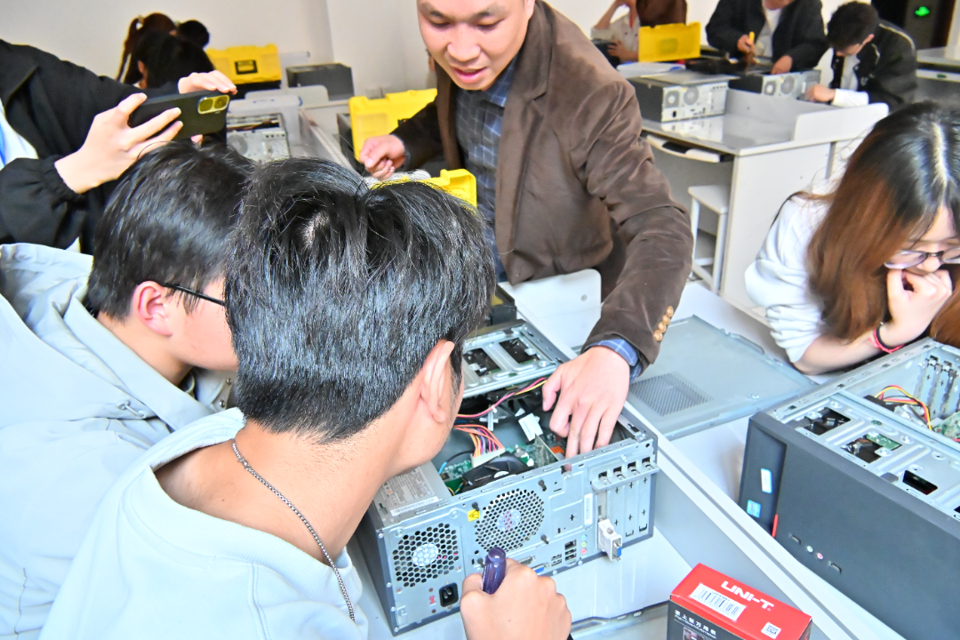 本网讯  为提升学生动手实践能力与创新素养,丰富科创实践经历,近日,信息工程学院大学生智创工场正式启动运营,面向全校学生开放电脑维修、硬件组装、科创制作、技能实训、竞赛孵化等多元服务,为同学们提供专业实操场地、齐全工具器材、优质朋辈互助平台和广阔项目竞赛舞台。 3 17 日,工场首期线下培训 —— 拆机实践培训在九章楼 114 教室顺利举办。活动特邀信息工程学院人工智能系刘志强老师现场指导,吸引众多学子踊跃参与。