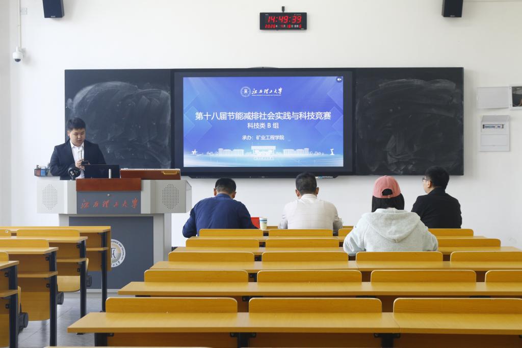 本网讯 4月18日,为响应国家“双碳”行动号召,激发大学生创新实践能力,由校实践教学办公室主办、矿业工程学院承办的校第十八届大学生节能减排社会实践与科技竞赛决赛于在三江校区(西园)阳明楼举办。