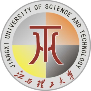 徽志是同心双圆形徽标,内圆正中是字母“JXUST”组成的“鼎”形标志,底色为金银铜铁四种金属的近似色;双圆之间上方是英文译名,下方是校名。
